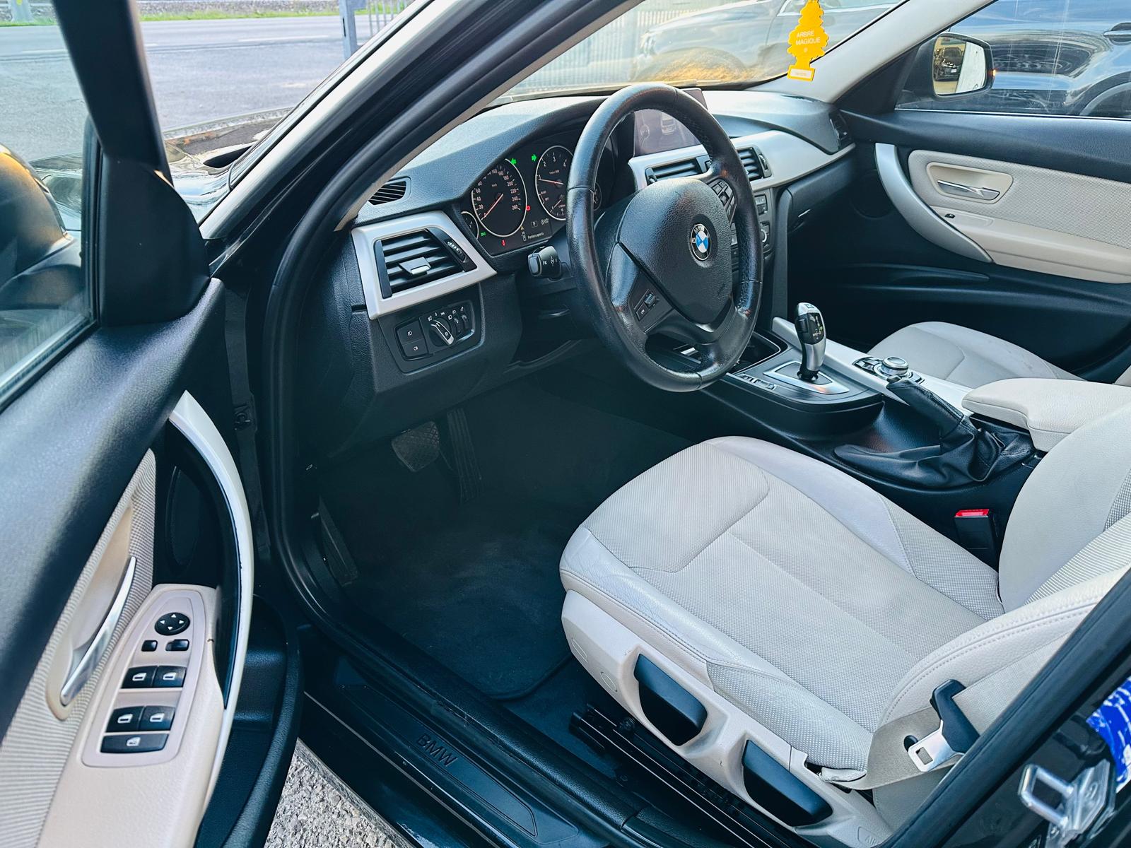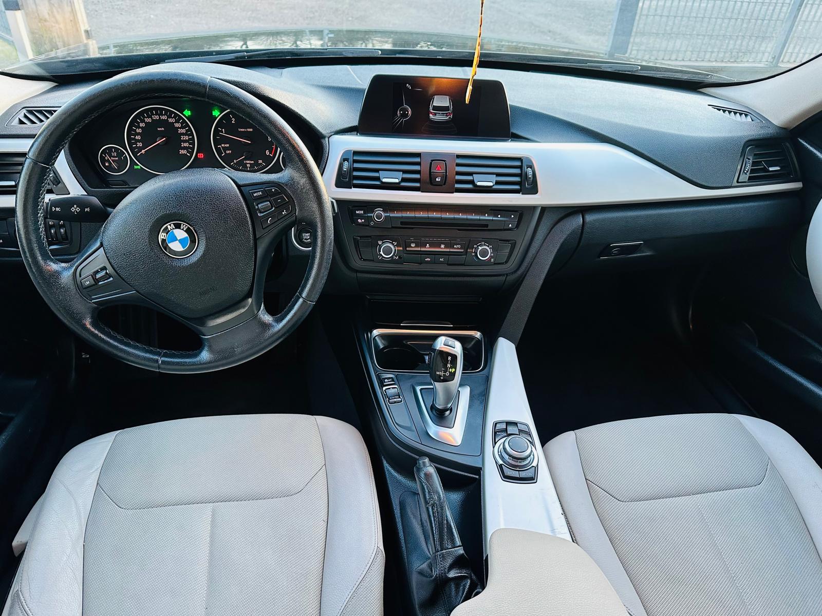 Vendo bellissima BMW 3 serie 316 diesel anno di immatricolazione 2015 euro 6 con km.140000 cambio automatico ,reali certificati ,unico proprietario ,sedili pelle parziali ,colore nero ,interni Beige , sensori di parcheggio posteriore , baule automatico, Gomme buone ,cerchi in lega ,comandi al volante ,blue tooth , AUX, Navigatore ,molto altro macchina veramente bella e buona tenuta molto buona ,meccanicamente perfetta e carrozzeria ce qualche grafi di usura